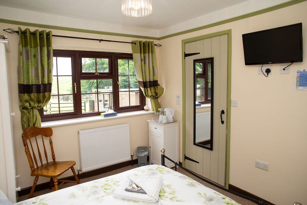 We have on offer two double bedrooms and one twin room, all with en suite shower rooms, both rooms have recently been decorated to provide you with a warm, comfortable, affordable nights rest. Our rooms are equipped with tea and coffee making facilities, colour TV, hair dryers and great view over the valleys and back garden area.